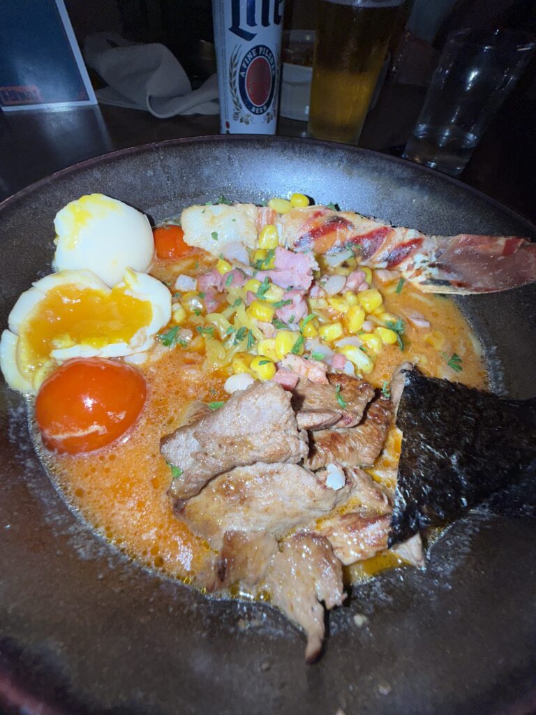 I tried seafood & steak ramen for the first time here and it was a delight. Their mozzarella bao buns were also incredible and I would definitely recommend stopping by if you are in the area.