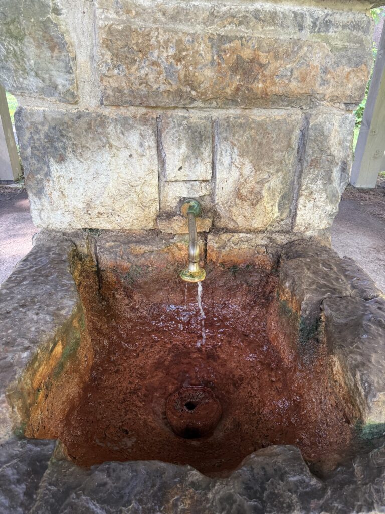 This natural spring water is so rich in iron that the stone turned red over time!