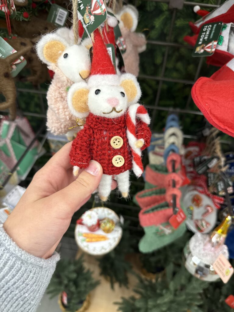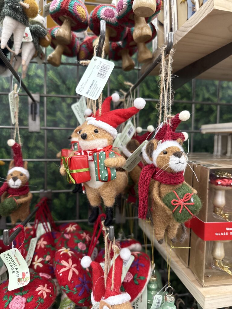 World market also has a broad selection of decor, with international items and countless handmade ornaments. This charming mouse one was my favorite. It’s knit sweater is so sweet.