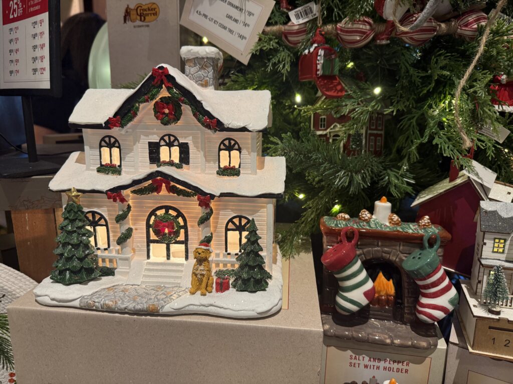 This was my first time shopping at Cracker Barrel, and I found their decor the most surprising. They had adorable Christmas houses and salt and pepper shakers.